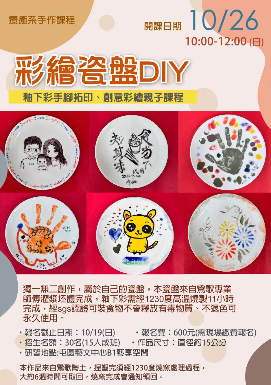 活動內容簡述釉下彩手腳拓印、創意彩繪親子課程 尺寸:約直徑15cmX高2.5cm