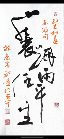 林榮宗老師他的作品不僅注重結構與章法,更重視書寫過程中所蘊含的情感流動與哲思表達。透過不斷的臨摹與創新,林老師建立出屬於自己的風格,筆墨間流露出深厚的文化底蘊與個人修養。他的創作,既是對古人法帖的致敬,也是對當代書藝的詮釋與延伸。