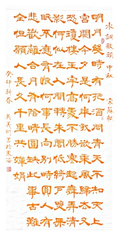 陳耀東先生擅長行書與草書,筆意酣暢淋漓、氣韻縱橫,作品中蘊藏著深厚的書學修為與情感流動;康文鳳小姐專精行書,書風婉約流麗、自然舒展,既見內斂雅緻之氣,亦具時代感的清新節奏;吳義馴先生則以隸書見長,筆法穩健雄渾、結構嚴整,展現古拙中見精神的典雅風範。