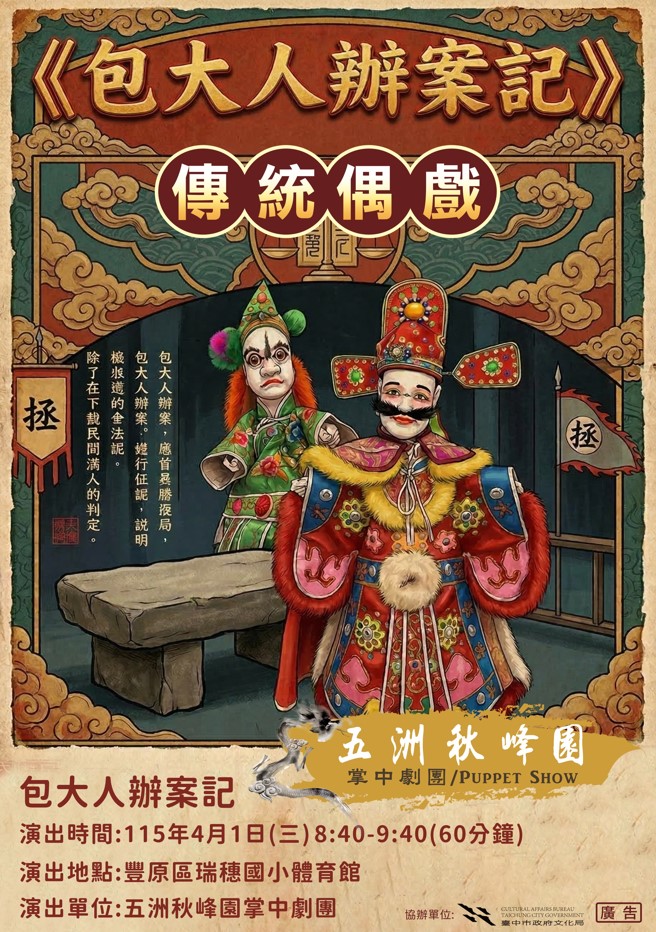活動內容簡述《包大人辦案記》的故事並不存在於歷史記載中,此為虛構的民間傳說或戲劇,內容通常是描述北宋包拯(包大人)在審理案件時,如何憑藉智慧和公正,將原本看似無法解決的大石,透過巧妙的審問,揭示出背後的真相,進而還給當事人公道的故事。